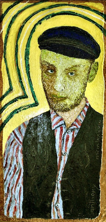 stray dog or Holy Homeless in a doorway. Brightness burns, consumes.